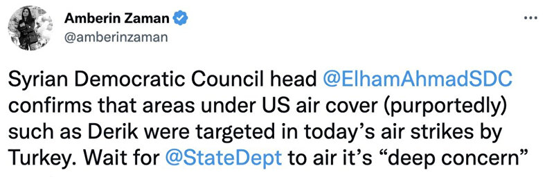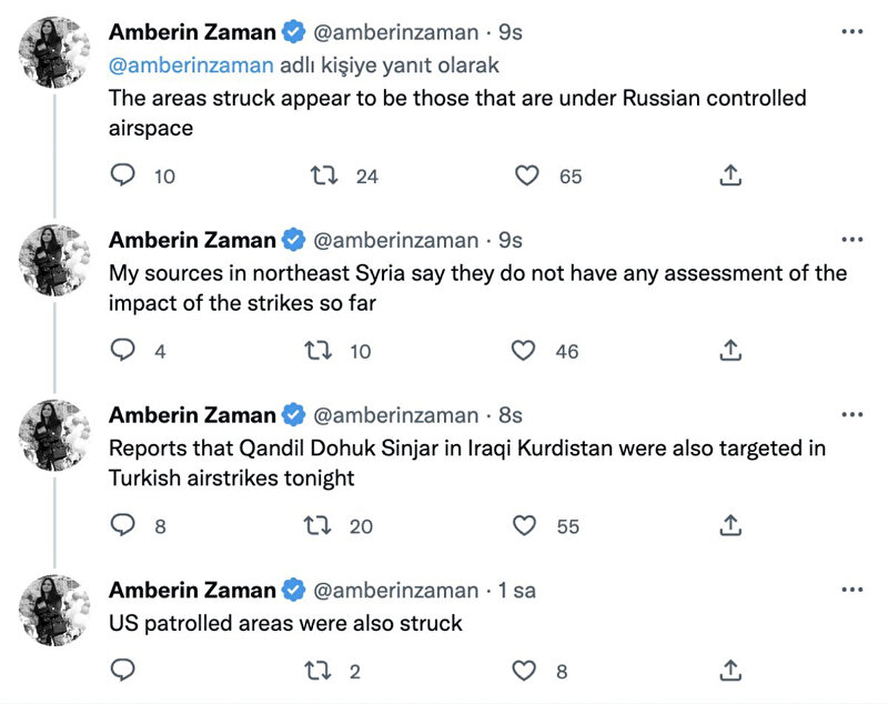 Türkiye'nin operasyonundan rahatsızlığını her platformda dile getiren sözde gazeteci Amberin Zaman, Suriye'deki kaynaklarından aldığı bilgileri de paylaştı.