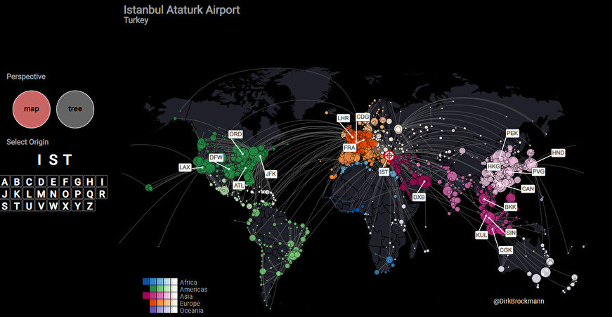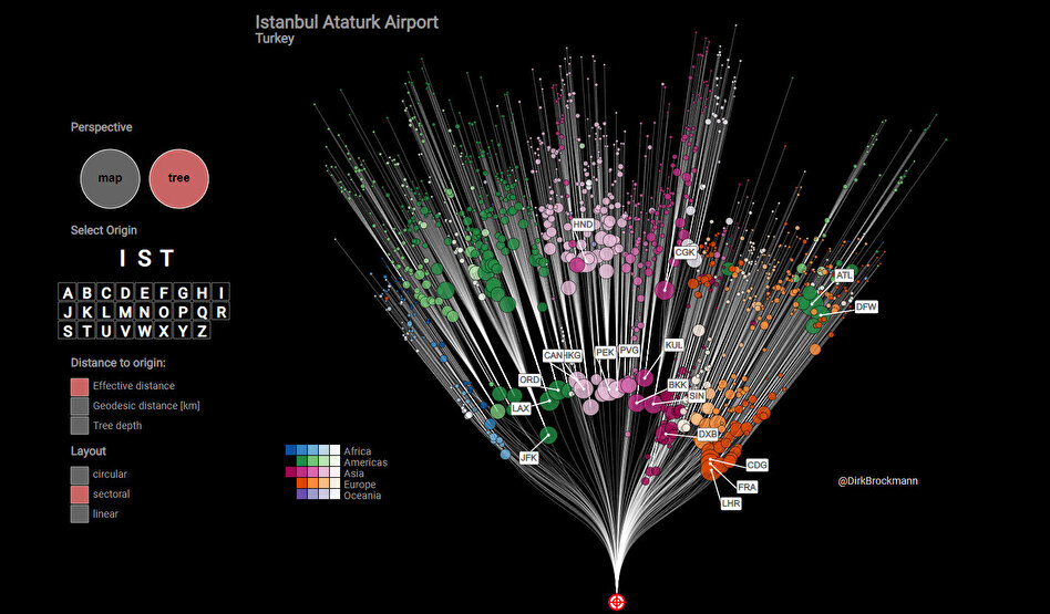 Birçok transit noktasına ev sahipliği yapan dünyanın en büyük havalalanlarının Koronavirüs salgın merkezi bölgesine etkin mesafeye göre notlandıran bir sistem geliştirildi. Etkin mesafe, havaalanlarından sehayat eden yolcu sayısı, bu yolcuların geldiği ülkeler ve havaalanlarının bağlantılı olduğu diğer havalaalanlarının sayısı baz alınarak belirleniyor. Yoğun yolcu sayısı ve uçuş planına sahip, özellikle Asya bölgesine yakın havaalanlarında risk artıyor.