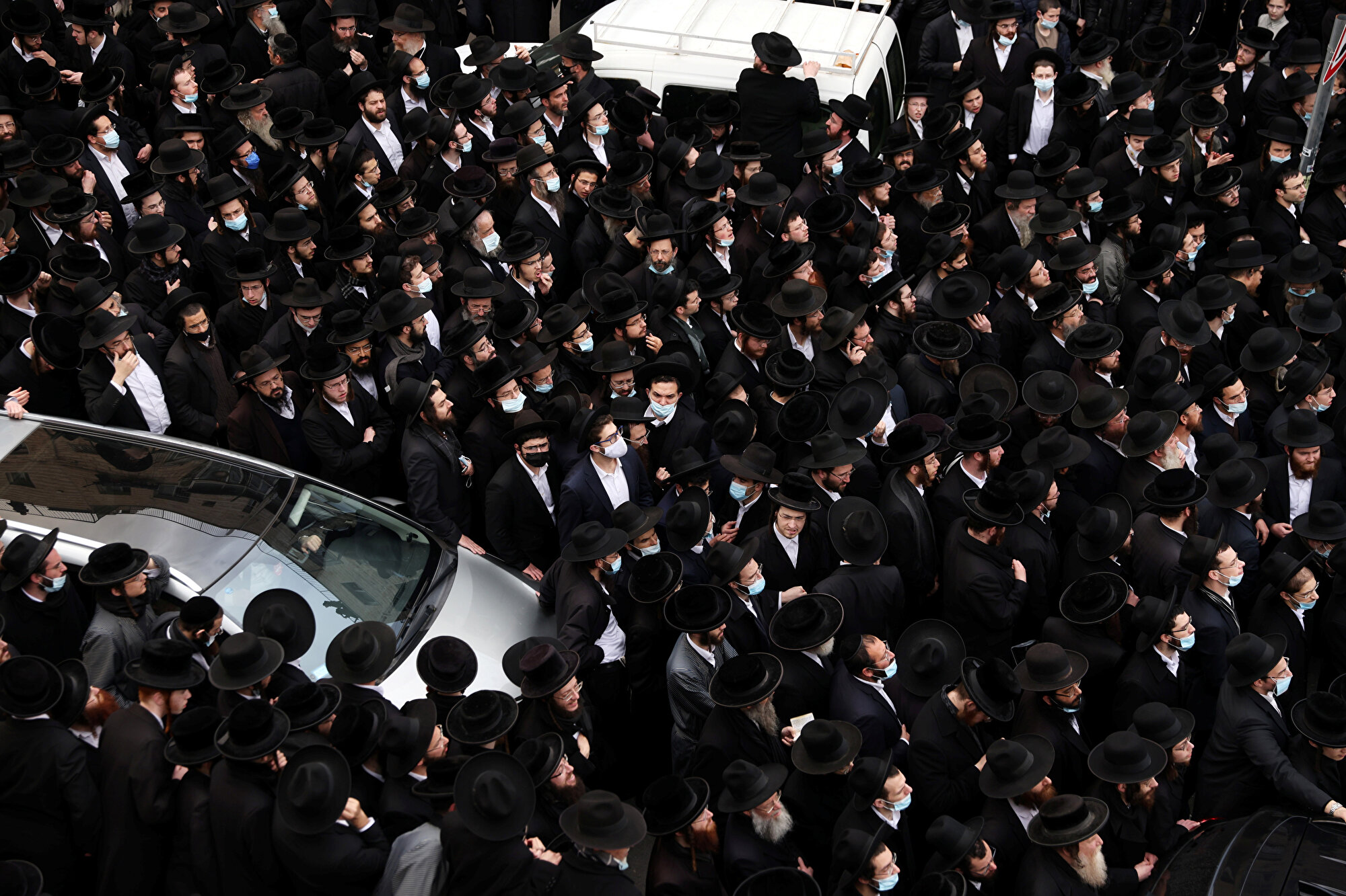 Hahamın cenaze törenine 10 binlerce kişi katıldı. Cenaze töreninde 10'dan fazla kişinin açık hava toplantılarında bir araya gelmesine getirilen kısıtlamaları kamuoyu önünde reddedenler, hahamın evinin çevresinde toplandı.