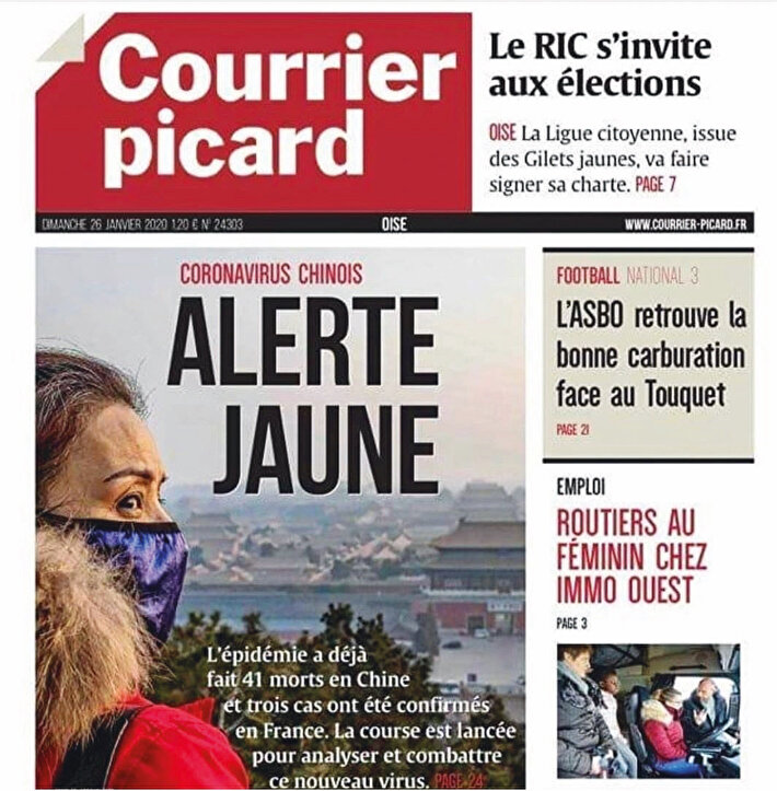 - Fransa’da Le Courrier Picard adlı gazete koronavirüsü manşetine taşırken skandal ifadeler kullandı. Yüzünde maske olan Çinli bir kadının fotoğrafını kullanan gazete, haberinde “Sarı Alarm” ve “Sarı Tehdit mi?” ifadelerine yer verdi. Batı kültüründe “sarı” kelimesi ırkçı şekilde Uzakdoğu Asyalıları ifade etmek için kullanılıyor. Gazete sert tepkiler üzerine kullandığı ifadenin “Asyalılara ilişkin en kötü basmakalıp” ifade olduğunu belirterek özür diledi.
