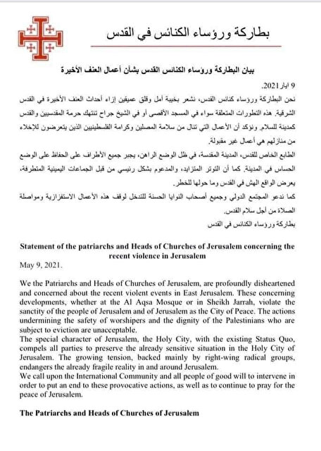 İsrail’in alçak saldırıları sonrası Kudüs’teki kiliseler ortak bir bildiriyle işgal devleti İsrail’e şiddete ve provokatif eylemlerine son vermesi çağrısında bulundu. Bildiride şu ifadelere yer verildi: