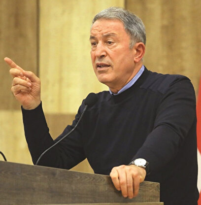 - Hulusi Akar Ege, Doğu Akdeniz ve Kıbrıs konusunda da mesajlar verdi. Yunanistan’ın çözüm yerine provokatif, tahrikkar ve gerilimi tırmandıran tavrı alışkanlık haline getirdiğini belirten Akar, bu yanlışlarının aklıselim Yunan halkı tarafından da görülmeye başlandığını söyledi. Akar, silahlanan, savunma bütçesini 5 kat arttıran Yunanistan’a“Yunan halkının maaşını, ücretini kesmek pahasına çılgınca bir silahlanma modası başladı. İstediğiniz kadar gemi, uçak, denizaltı alın yetmez. Olan sevgili Yunan halkına olacak”mesajını gönderdi. Adada gerçek bir çözümün önemine de işaret eden Akar,“Bunun için Rumların şımarık ve inatçı tutumlarından vazgeçmeleri, Türk varlığını kabul etmeleri lazım”diye konuştu.