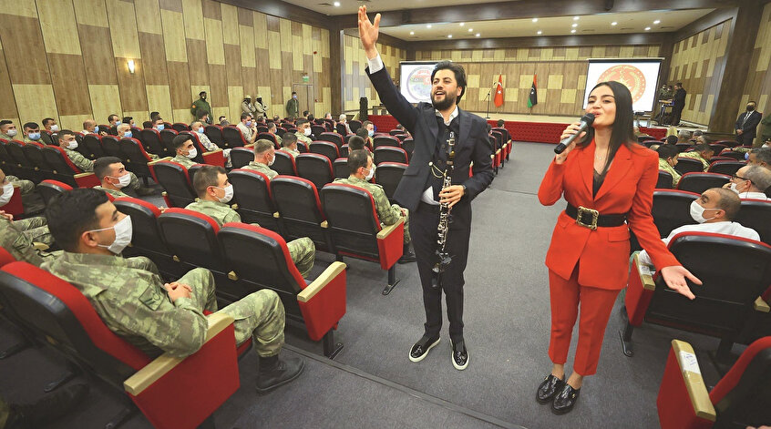 Türkiye’den gelen sanatçılarla moral depolayan Mehmetçik, Esat Kabaklı, Serkan Çağrı ve Elif Buse Doğan’ın türkülerine bir ağızdan eşlik etti.