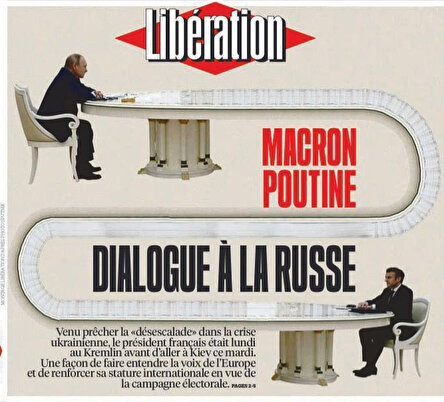 - Fransa Cumhurbaşkanı Emmanuel Macron’un Moskova’da maruz kaldığı “diplomatik mesafe” ülkesinde tartışma konusu oldu. Macron’u uzunca bir masanın diğer ucunda karşılaması ve yakınlaşmaması Fransız basınında ve sosyal medyada ana gündem olurken iki liderin sosyal mesafesi “Kovid-19 protokolünden mi, yoksa Fransa-Rusya ilişkilerinin yansıması mı?” şeklinde ele alındı. İki liderin arasındaki mesafeye ilişkin basına yansıyan görüntüler, Fransız Twitter kullanıcıları tarafından “Putin’den Macron’a sıcak karşılama”, “Sosyal mesafe”, “Akşam yemeği başlayabilir”, “Saat farkı” şeklinde başlıklarla değerlendirildi. Manşetlere de yansıyan olaya ilişkin Fransız Cnews kanalı “Emmanuel Macron-Vladimir Putin görüşmesi: Yakınlaşmanın devasa masası” şeklinde haberi servis ederken Huffpost “Macron ile Putin’in görüşmesindeki masa dolanmaya değer” ifadesini kullandı. Liberation gazetesi de manşetinde, iki mevkidaşın görüştüğü masaya labirent ekleyerek “Macron-Putin Rus usulü diyalog” başlığını tercih etti.