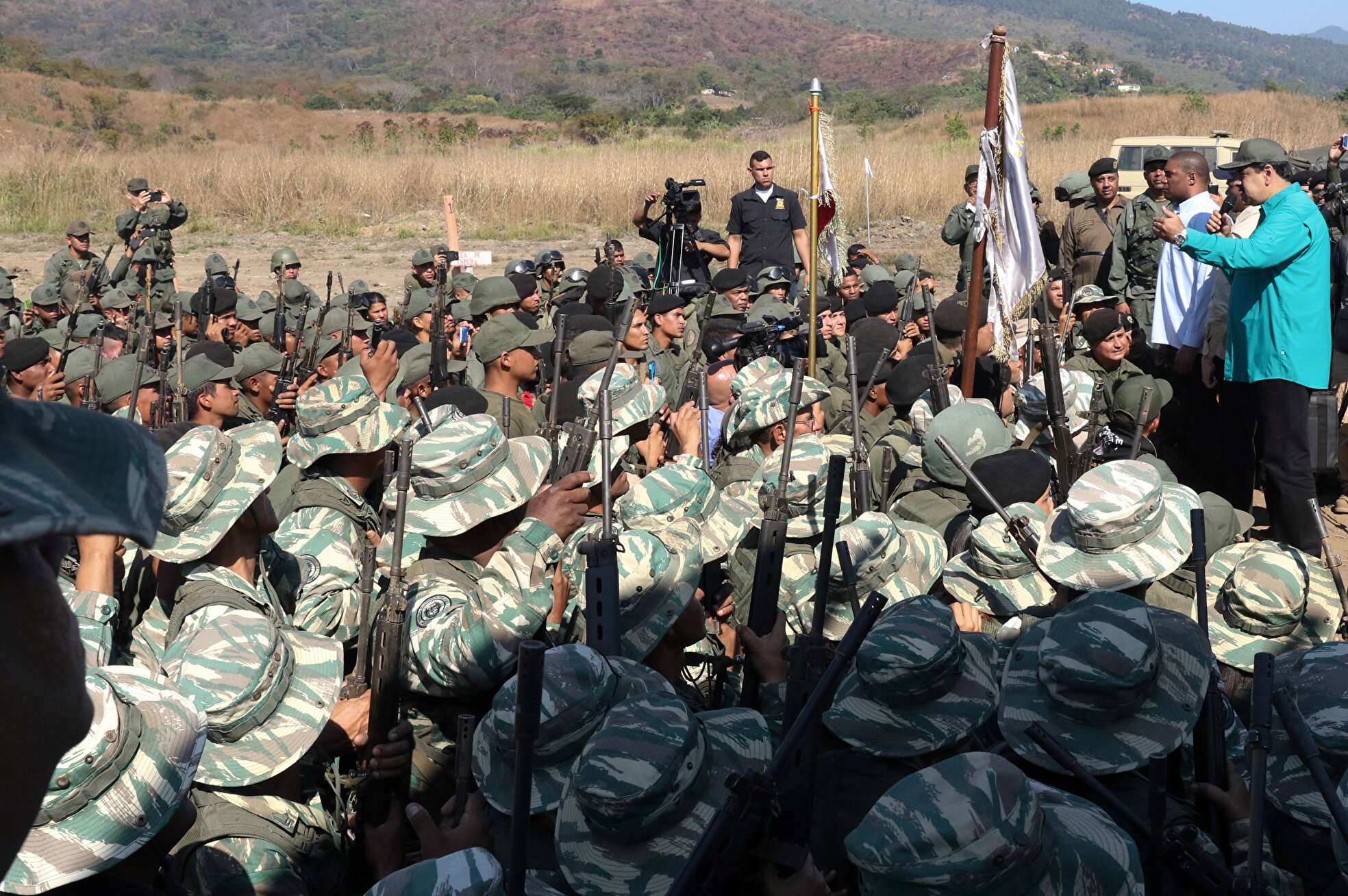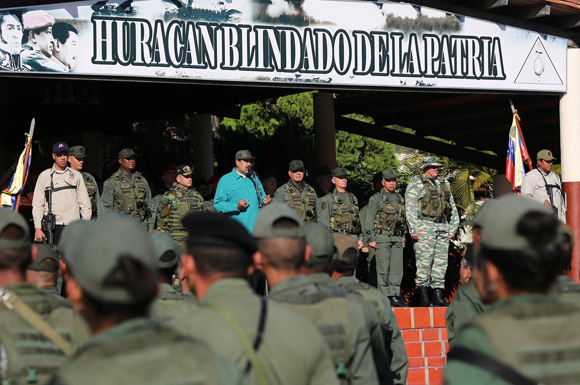 Ülkesinde "geçici devlet başkanlığı" ilan eden muhalifler, dışarıda ise ABD olmak üzere birçok batı ve Latin Amerika ülkesinin baskısı karşısında zor günler geçiren Devlet Başkanı Maduro, Carabobo eyaletindeki 41. Zırhlı Tugayı ziyaret ederek güvenlik güçleri ile bir araya geldi.