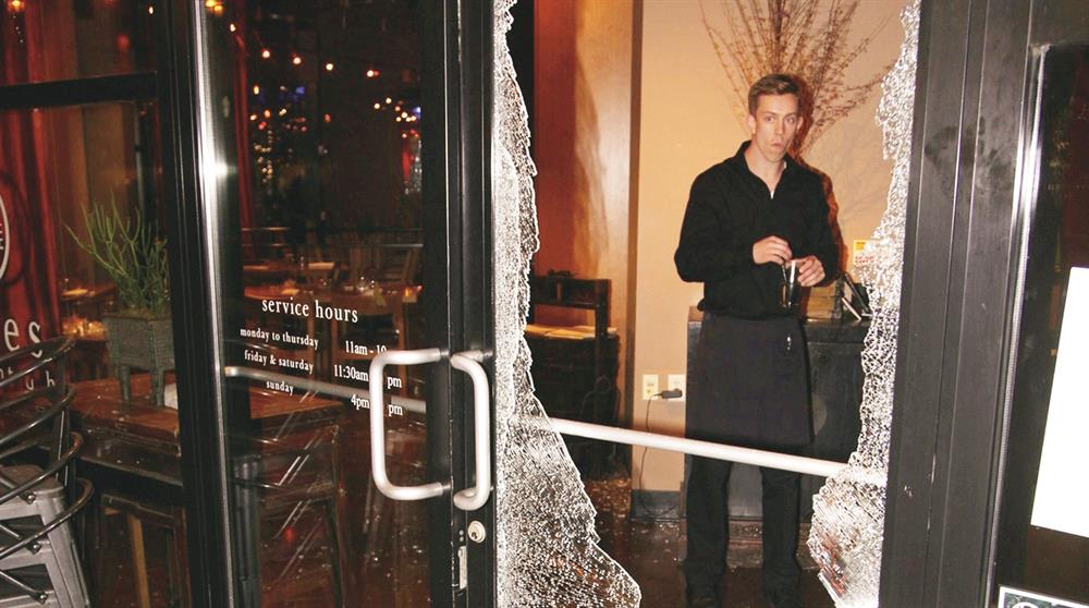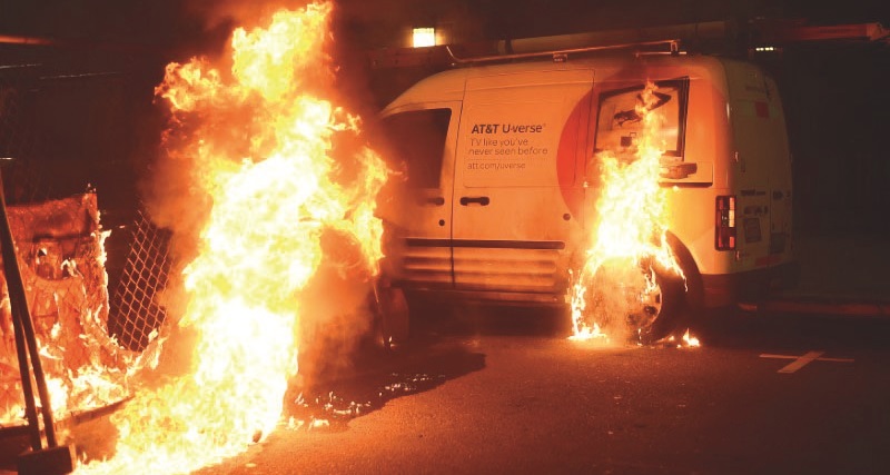 Polisin “ayaklanma" olarak tanımladığı protestolarda, bazı maskeli anarşistler beyzbol sopalarıyla dükkanların, bankaların camlarını kırdı.
