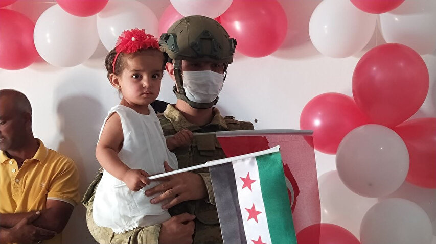 Bölgede özgür bir şekilde yaşadıkları için çok mutlu olduklarını söyleyen minik Pınar’ın babası Ali El Halil, “İki yıl önce, operasyonun ilk gününde eşime cerrahi müdahale yapılması gerekiyordu. Bu bölgede hastane ya da sağlık ocağı yoktu. Türk askeri eşimi zırhlı araca bindirip Akçakale’de hastaneye götürdüler. Orada başarılı bir şekilde doğum yaptı. Diğer kadınlar gibi normal bir doğum yaptığını düşünüyordum ancak askerlerin gösterdiği ilgiden dolayı çok büyük bir fark gördük. Kızım bu gün 2’inci yaşını dolduruyor ve bölgede özgür bir şekilde yaşadığımız için çok mutluyuz” dedi.