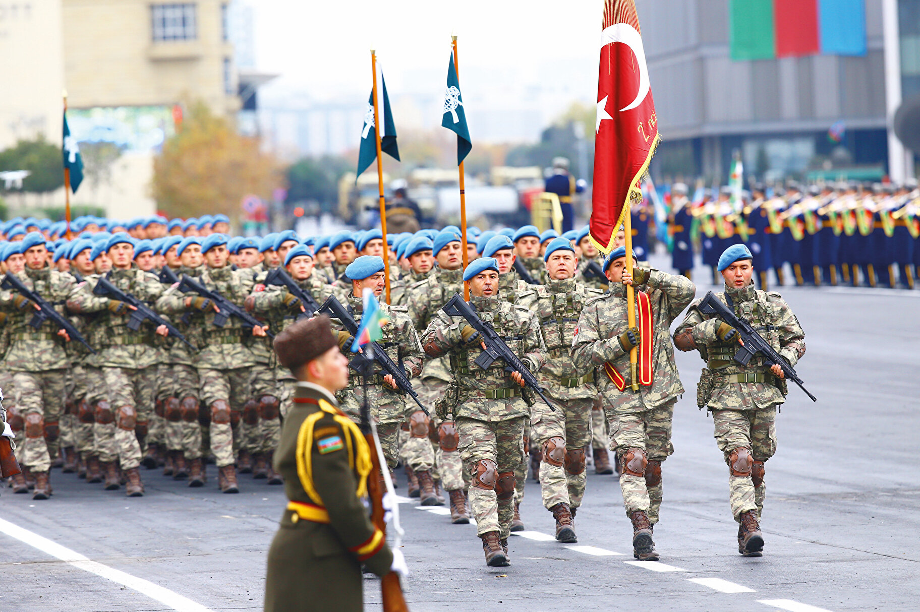 Azerbaycan ordusunun Karabağ’da elde ettiği zafer nedeniyle 10 Aralık’ta yapılacak kutlamalar öncesi yapılan provalar nefesleri kesti. Bakü sokaklarında kortej halinde yürüyen Türk askerinin ayak sesleri caddeyi inletti.
