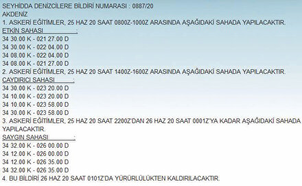 ’in İstanbul’u fethedişinin yıldönümü 29 Mayıs’ta yayınlanan duyurudaki mesaj, Türkiye’ye karşı ittifak halindeki ülkelere rest anlamı taşıyordu. Deniz Kuvvetleri Seyir Hidrografi ve Oşinografi Daire Başkanlığı’nın (SHOD) 25 Haziran tarihli son duyurusu bu kez ‘ETKİN’, ‘SAYGIN’, ‘CAYDIRICI’ oldu. Yaklaşık 4 aydır savaş gemilerini sürekli Libya açıklarında bulunduran ve gönderilen yardımların engellenme girişimlerine karşı caydırıcı bir rol üstlenen Türk donanmasının son mesajı, her türlü tacize gerekli cevabın verileceğine yönelik kararlı bir mesaj niteliğinde görülüyor.
