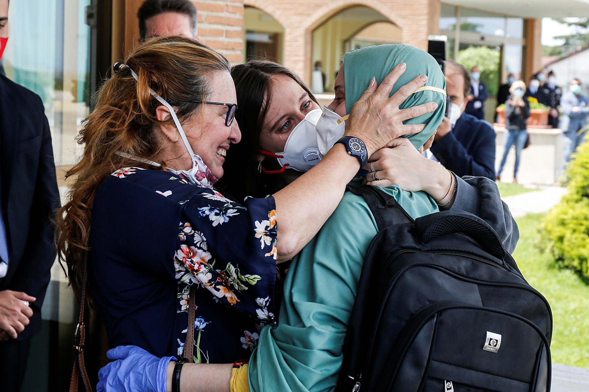 Romano’yu, İtalya Başbakanı Giuseppe Conte, Dışişleri Bakanı Luigi Di Maio ve ailesi karşılarken, 25 yaşındaki genç kız, kurtarılmasında emeği geçenlere teşekkür etti.