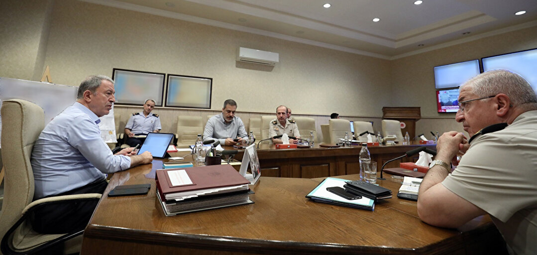 Kuvvet Komutanlıklarının Harekat Merkezleri ve bölgedeki birliklerin komutanları ile video konferans yöntemiyle görüşülen toplantıda, sahadan gelen son görüntüler de detaylı olarak incelendi.