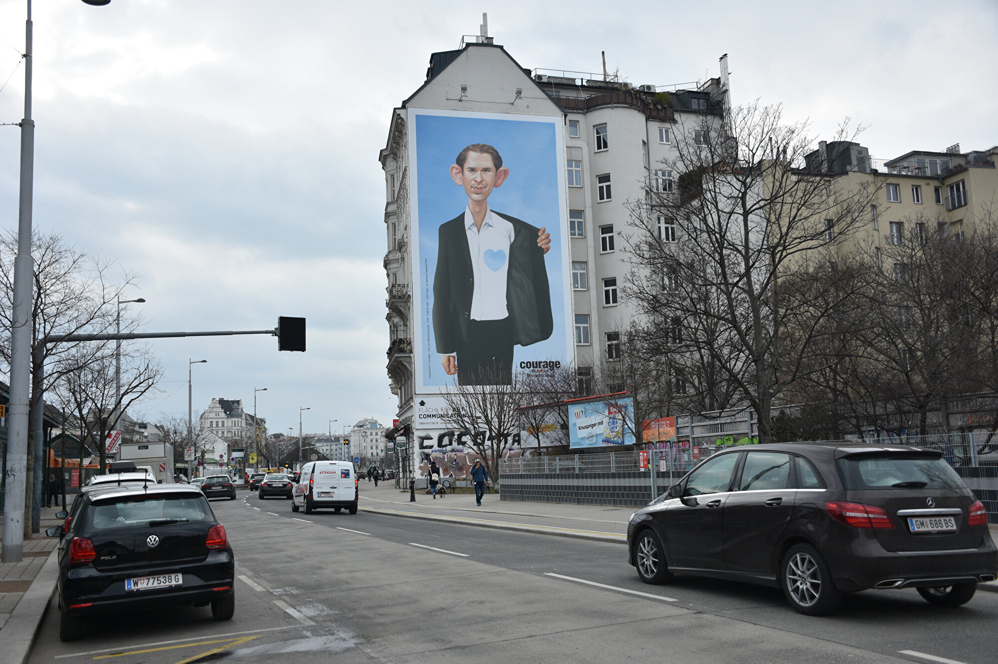 Avusturya Başbakanı Sebastian Kurz, mülteci karşıtı politikaları nedeniyle başkent Viyana'da yer alan bir binaya "kalpsiz" haliyle resmedildi. Karikatürü çizen sanatçı, "Burada kalpsiz bir siyasetçiyi resmettim." dedi.