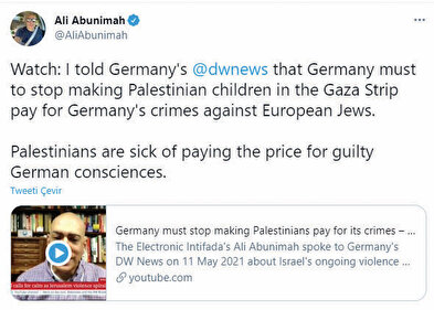 Almanya’nın devlet kanalı Deutsch Welle de, Arap aktivist Ali Abunimah’ın “Almanya Nazi rejimini suçunu Filsitinli çocuklara ödetmesin” mesajını verdiği röportajı, İsrail’in tepkisinin ardından sildi ve sonra özür diledi. Alman Bild gazetesi de söyleşi sonrası Arap aktivisti, “Anti semit” sözleriyle hedef aldı. Abunimah, Alman medyasının sansürüne, “Faşist İsrail’in suçları anlatmak için Avrupa’da ifade özgürlüğüne yer yok” tepkisini gösterdi. Alman Dışişleri Bakanlığı da, İsrail’in saldırılarını “kendini savunma hakkı” olarak tanımlayıp tam destek vermekten geri durmadı.