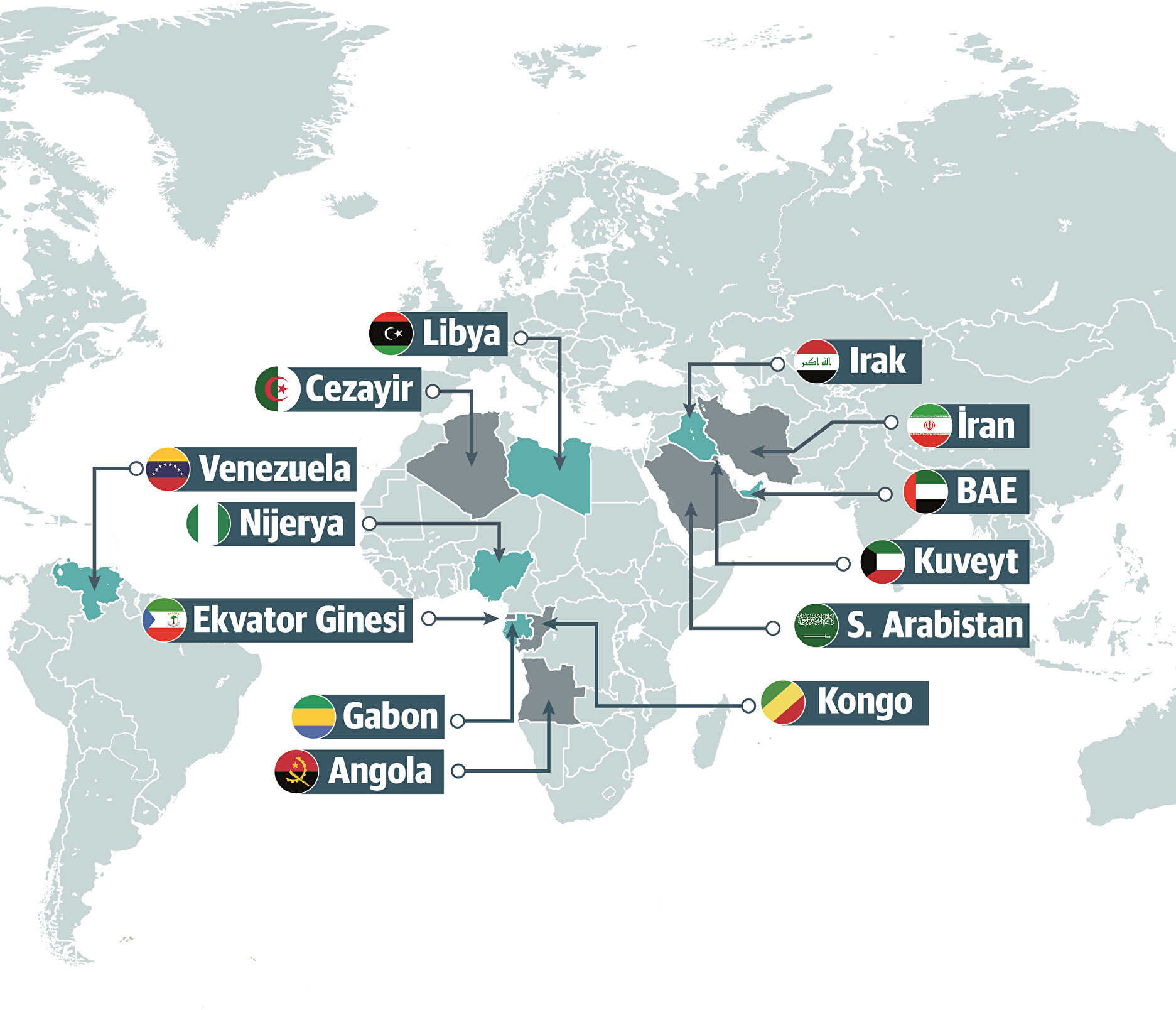 Petrol İhraç Eden Ülkeler Örgütü (OPEC), 14 Eylül 1960’ta Suudi Arabistan, İran, Irak, Kuveyt ve Venezuela tarafından kuruldu. Petrol piyasasında fiyatları kontrol etmek ve uluslararası petrol şirketlerine karşı blok oluşturmak amacıyla kurulan yapıya, 1962-1975 döneminde Katar ve Birleşik Arap Emirlikleri (BAE) gibi Körfez ülkeleri ile Endonezya, Libya, Nijerya, Cezayir ve Ekvador gibi önemli petrol üreticisi ülkeler katıldı. Böylece OPEC'in 1970'lerde küresel petrol piyasasındaki payı yüzde 70'e ulaştı ve örgüt piyasadaki arzı, dolayısıyla da fiyatları büyük ölçüde kontrolü altına aldı. OPEC şu an Suudi Arabistan, BAE, İran, Irak, Kuveyt, Libya, Nijerya, Cezayir, Angola, Gabon, Endonezya, Venezuela ve Ekvator Ginesi olmak üzere 13 üye ülkeden oluşuyor.