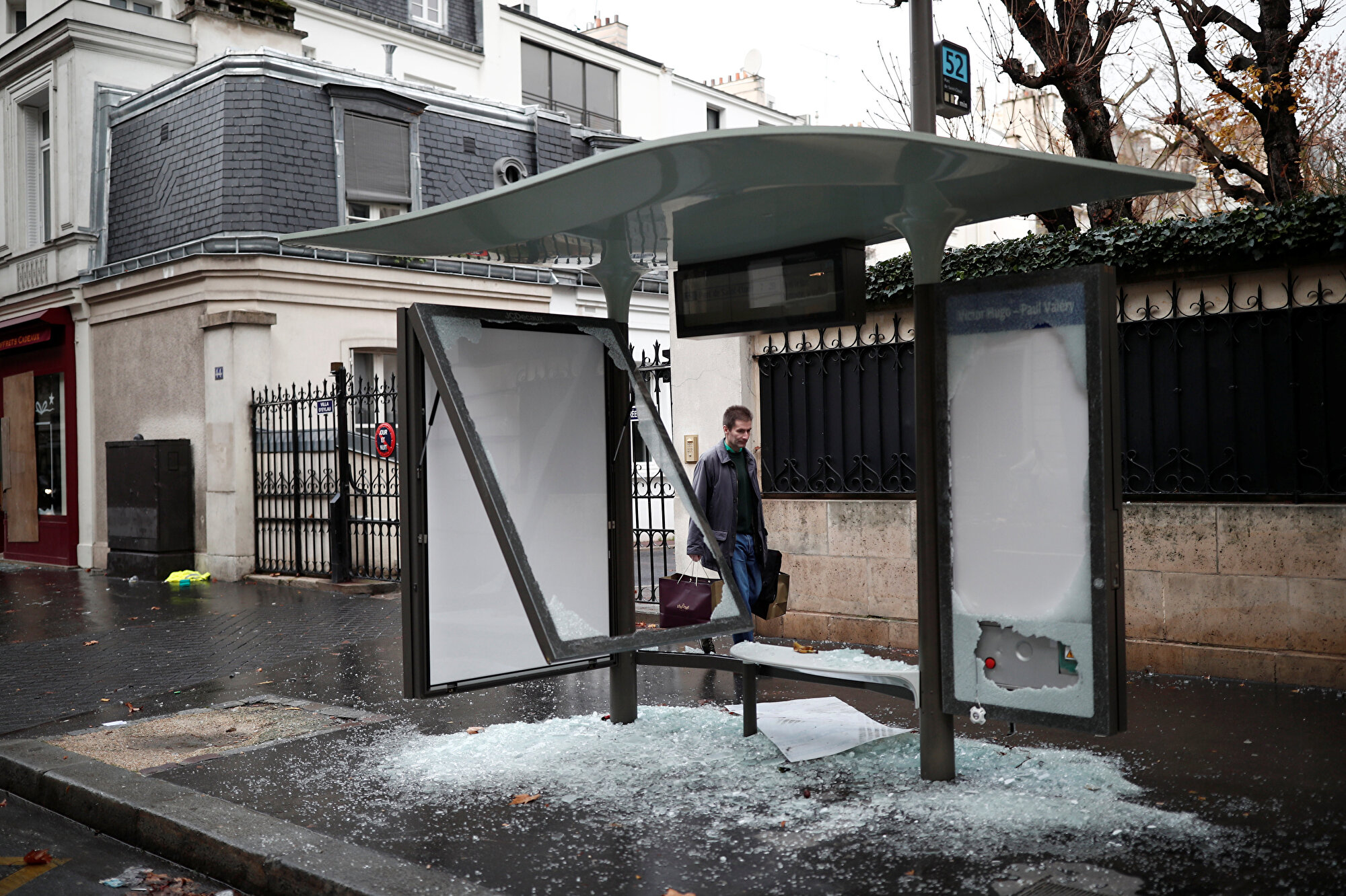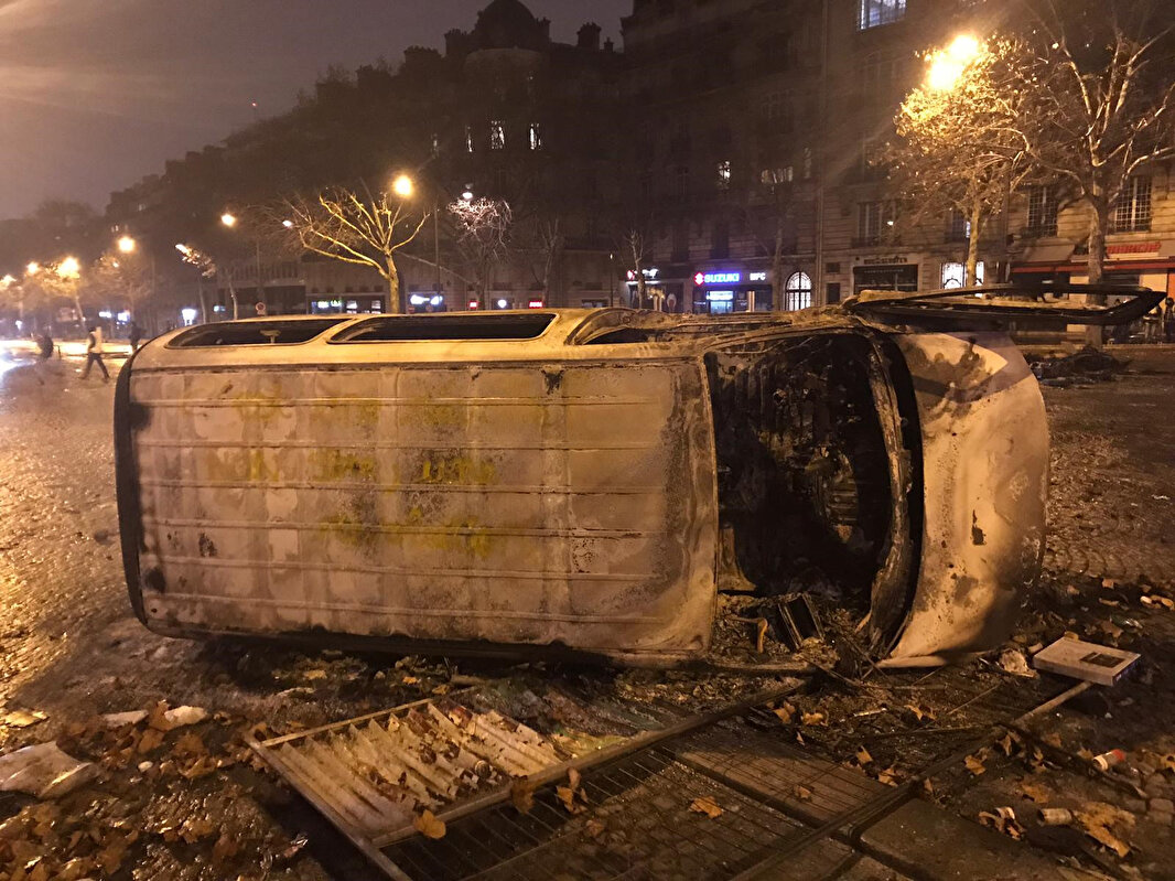 Polis arabaları ve sivil araçlar yakıldı, kentin en ünlü sanat galerinden biri olan The Jeu de Paume ateşe verildi. Şanzelize Meydanı'nda yer alan mağazaların camları indirildi.