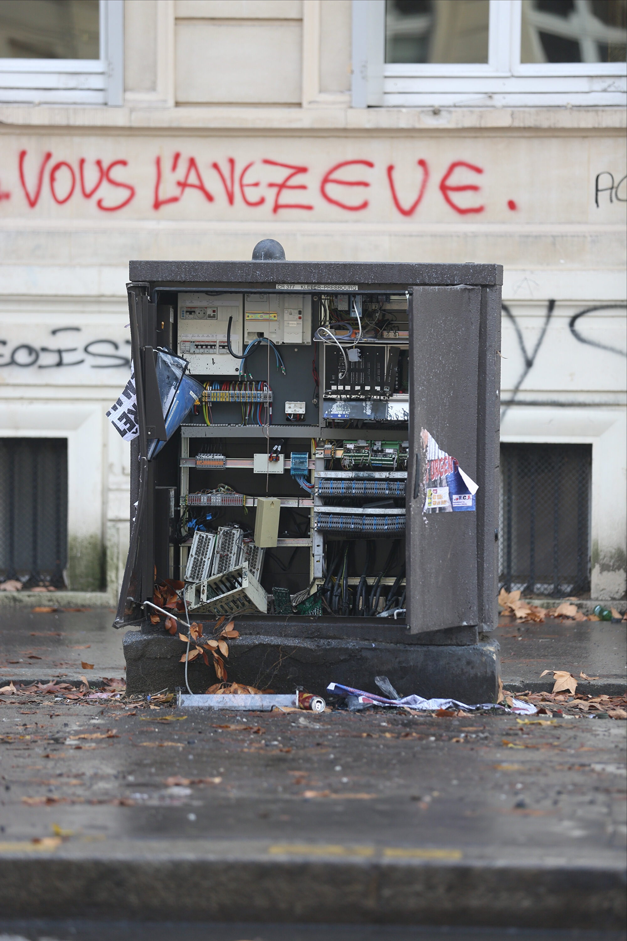 Göstericiler, Paris'in caddelerinde çok sayıda araç ve çöp bidonunu ateşe vermiş, polislere taş ve şişe fırlatmıştı. Paris sokaklarında sık aralıklarla ses bombaları duyulmuştu.