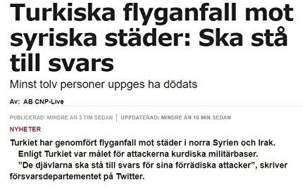 başlığı ile okurlarına duyurdu. Haberde vurulan hedefler arasında Kobani'nin de olduğu bilgisinin altı çizildi.