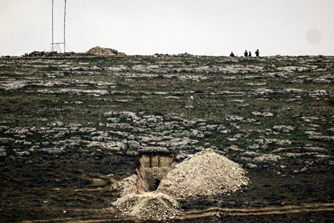 Bugün ise aynı noktada ABD askerlerinin olmadığı görüldü. Daha önceden ABD askerlerinin korumasıyla hendek ve tünel kazan teröristler bugün aynı noktada toplantı halinde görüntülendi. Görüntülerde PKK/YPG’li teröristin Seyade dağının tepesinde hendek ve tünellerin başında toplantı halinde olduğu görüldü.