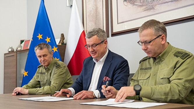 Polonya Sınır Koruma Birimi (Straz Graniczna) bariyer inşaatı için Polonyalı TELBUD firmasıyla sözleşme imzaladıklarını duyurdu. Elektronik bariyer sisteminin, çeşitli fiziksel özelliklerini algılayan sensörler sayesinde kapsamlı bir durum resmi sağlayacağını, arazi ve hava koşullarından bağımsız olarak sürekli bir şekilde bilgi aktaracağını ifade eden Sınır Koruma Birimi, bariyer inşaatına Mart ayında başlanacağını bildirdi.
