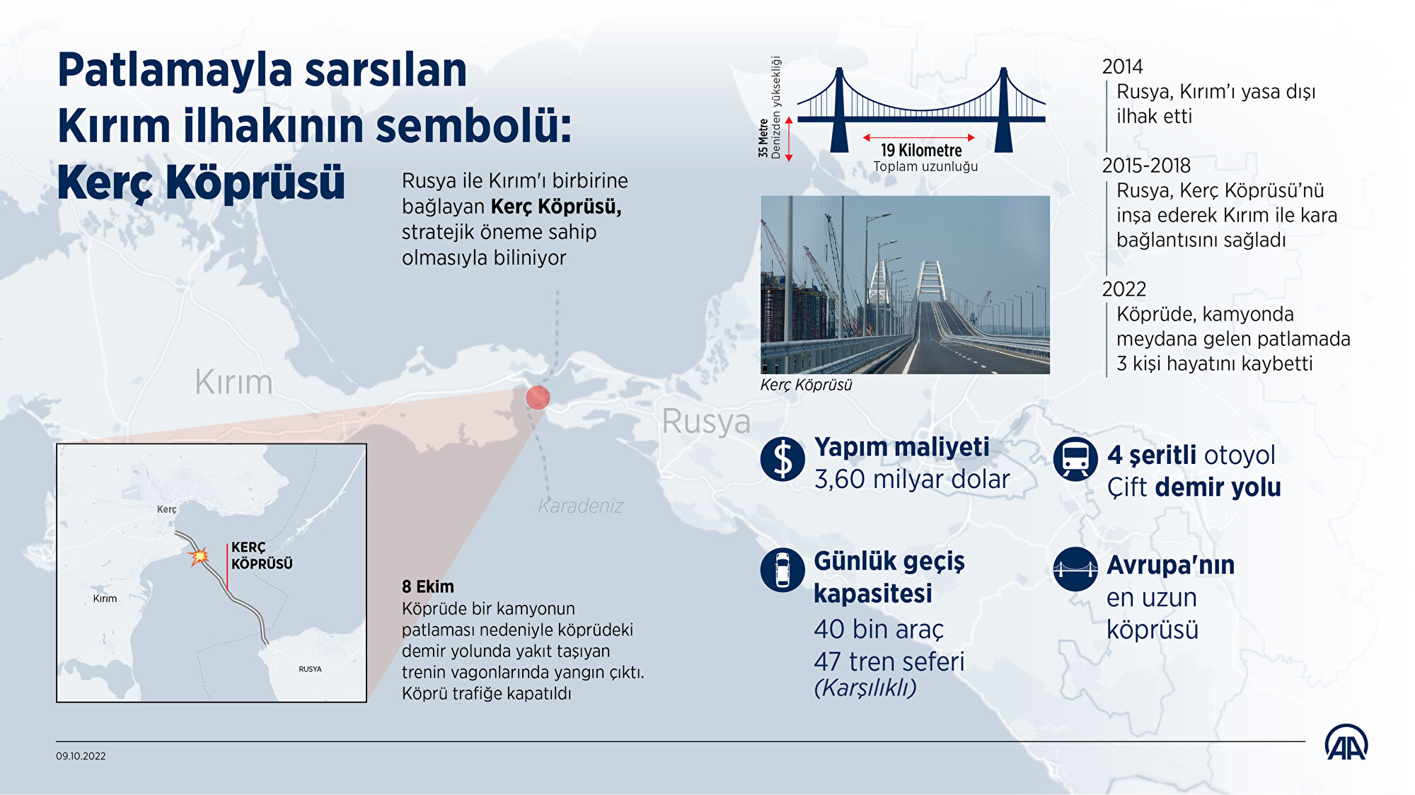 Putin'in 2018’de resmi açılışını yaptığı ve "Kırım" ismiyle de anılan köprü, Kırım ile kara yolu bağlantısını sağlaması nedeniyle Rusya için stratejik öneme sahip.