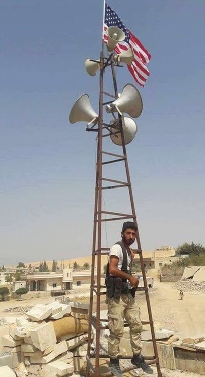 Münbiç'in kuzeyinde yer alan ve muhaliflerle PYD terör örgütü arasındaki cephe hattını oluşturan terör örgütü kontrolündeki Cad köy meydanına ABD bayrağı asıldı.