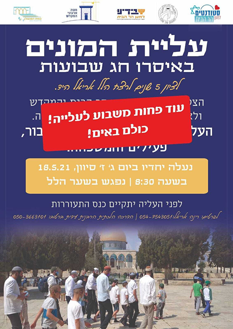 Sosyal medya üzerinden örgütlenen radikal gruplar, Şavuot vesilesiyle 16 Mayıs Pazar ve 18 Mayıs Salı arasında Mescid-i Aksa'ya üç gün boyunca 'baskın' yapmayı planladıklarını açıkladı.
