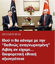 - Tarihî anlaşma Güney Kıbrıs basınında da geniş yer buldu. Rum medyasının amiral gemisi Fileleftheros, imzalanan mutabakat muhtırası ile Türkiye’nin bölgedeki gücünün giderek arttığına işaret ederek, “Ok yaydan çıktı. Yunanistan’ın münhasır ekonomik bölgesini yiyorlar” başlığını attı. Gazete, anlaşmanın Doğu Akdeniz’de enerji konularında yeni anlaşmazlıklara yol açacağını ileri sürerken, Haravgi gazetesi ise “Deniz sınırlarının belirlenmesi lonusunda Türkiye-Libya anlaştı. Anlaşma Girit’ten bir bölgeyi de içeriyor” başlığını kullandı. Politis de gelişmeyi okuyucularına, “Türkiye ve Libya Yunan MEB’ini yiyorlar. Denizi grileştiriyorlar” başlığıyla duyurdu. Yunan ve Güney Kıbrıs’la aynı tezleri paylaşan Mısır’da da medya, anlaşmayı ‘yok hükmünde’ sayarak mutabakatın tanınmayacağını iddia etti.