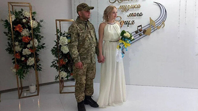 Ukrayna ordusunda görev alan asker 5 yıllık ilişkisinin ardından kız arkadaşı ile evlenme kararı aldı.