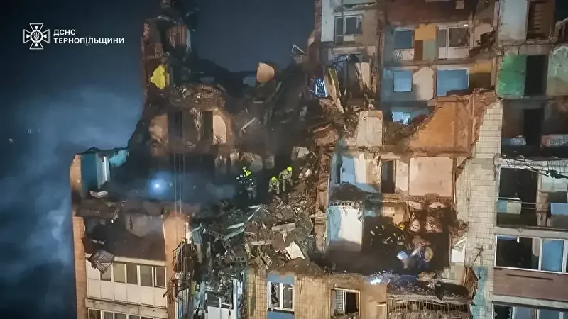 Rusya ile Ukrayna arasındaki savaş sürerken, Ukrayna’nın Ternopil kentinde, Rusya’nın gece düzenlediği saldırının ardından yerleşim birimi zarar gördü. Düzenlenen saldırıda, üçü çocuk 28 kişi hayatını kaybetti.