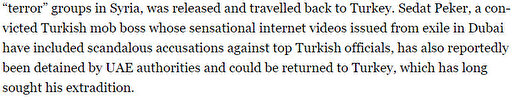 Haberde iki ülke arasındaki ilişkilerin ısındığı ifade edilerek Sedat Peker'in Birleşik Arap Emirlikleri yetkilileri tarafından göz altına alınmış olabileceği iddialarının gündeme geldiği ifade edildi.