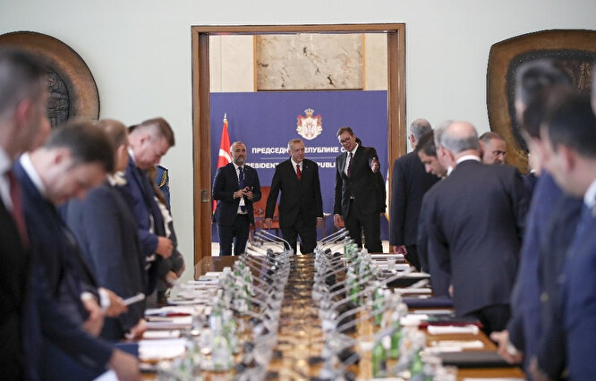 Cumhurbaşkanı Erdoğan, Sırp mevkidaşı Vucic ile ortak açıklamalarda bulundu. İkili ilişkilerde tarihi adım atıldığını vurgulayan Cumhurbaşkanı Erdoğan, "Sırbistan tarafı ülkemizin Yeni Pazar'a başkonsolosluk açma talebine olumlu cevap verdi" ifadesini kullandı. Sırbistan Cumhurbaşkanı Vucic de ekonomik iş birliği anlamında yeni alanlar üzerine konuştuklarını belirterek, "ABD'nin, Türkiye'nin Kosova ile ilgili kararını değiştirecek değiliz. Biz de dostlarımızdan çok uzak düşmek istemeyiz. Burada derdim kahramanlık değil. Buralarda o insanları kim besleyecek? Onlara kim ekmek verecek? Hangi batılı firmayı buraya getirebilirsiniz? Başka kimi getirebilir? Recep Tayyip Erdoğan geldi. Bunları kolay mı sanıyorsunuz? Sırbistan, Türkiye arasındaki ilişkileri 140. yılını idrak ediyoruz. Bir ortak pul basıldı" dedi.