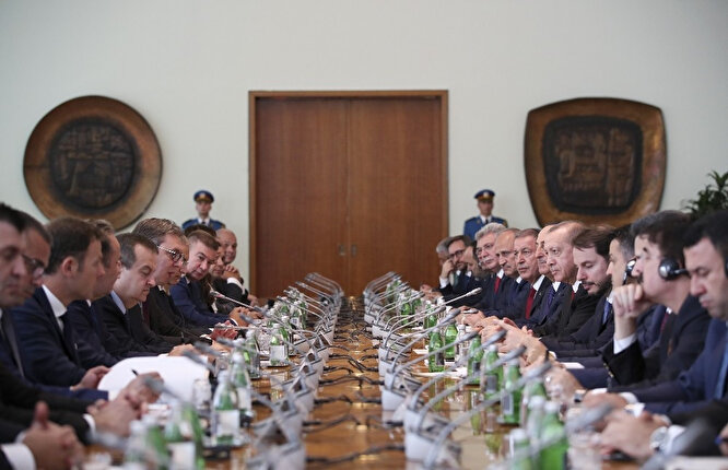 Sırbistan'ı 2 yıl aradan sonra tekrar ziyaret etmekten duyduğu memnuniyeti ifade eden Erdoğan, 2019 yılının iki ülke arasındaki diplomatik ilişkilerin 140'ıncı yıl dönümü olmasının ayrı bir önem ifade ettiğini bildirdi.
