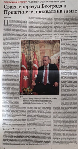 - Erdoğan, Sırbistan ziyareti öncesi ülkedeki "Politika" gazetesinin Dış Politika Editörü Dragan Vukotic ile mülakat gerçekleştirdi.
