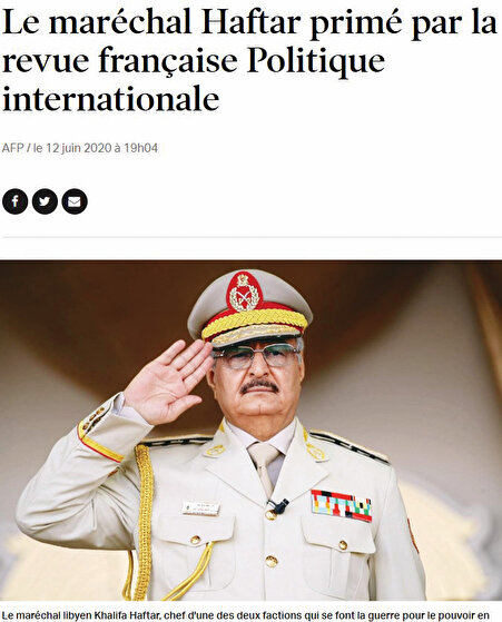 Libya’da darbecilerin yanında saf tutan Fransa, katliam çetesi lideri Halife Hafter’e şimdi de madalya verdi. Fransız gazetesi Politique, Hafter’e ‘Siyasi Cesaret Ödülü’ne layık gördüklerini sayfalarında duyurdu. Hafter’in Libya’da ‘İslamcı teröre’ ve Türkiye destekli ‘Müslüman Kardeşler’e karşı ‘başarıyla mücadele ettiğini’ savunan Fransızlar, darbeci diktatörün Trablus’u ele geçirmek için bir yıldır savaştığını, son haftalarda kayıplar yaşasa da faaliyetlerinden ötürü cesaret ödülünü hak ettiğini ileri sürdü. Gazete daha önce aynı ödülü Avrupa Birliği (AB) Komisyonu Başkanı Ursula von der Leyen ile Yunanistan eski Başbakanı Aleksis Çipras’a da vermişti.