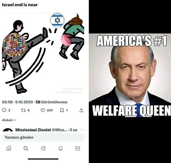 20 milyon etkileşim yaratan paylaşımda, binlerce ABD'li, İsraillilere, vergileriyle ayakta kaldıklarını hatırlattılar, İsrail Başbakanı Binyamin Netanyahu için, ABD'de sosyal yardımları istismar edenler için kullanılan "Refah Kraliçesi" nitelemesi yapıldı.