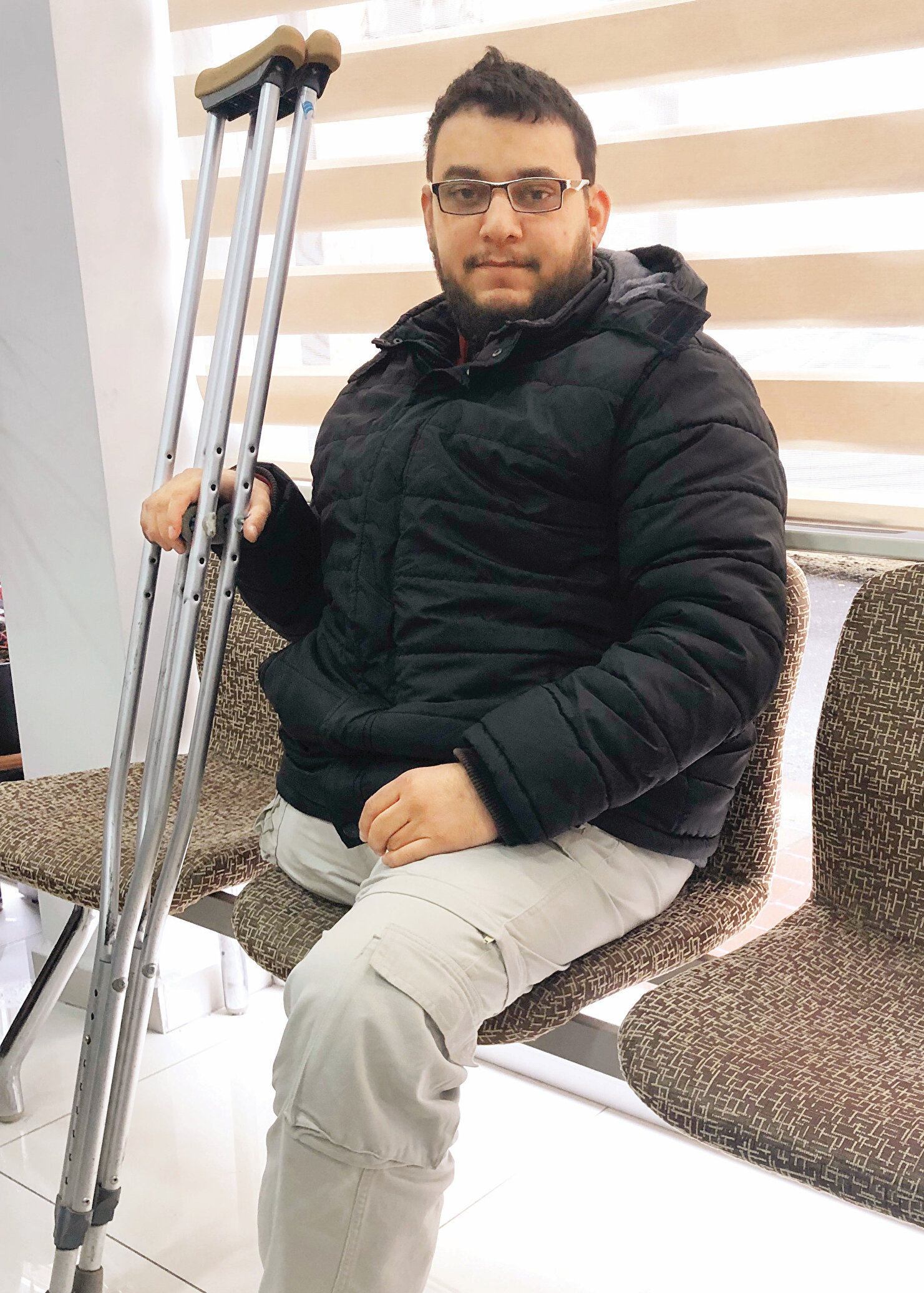 - Suriye ablukası başlamadan önce Şam’da özel bir şirkette icra memuru olarak çalışan Faras Alfawal (33) savaşın ikinci yılında evlendi. Hayatını savaş öncesi ve sonrası olarak ikiye ayıran Alfawal, bir yıl önce direniş sırasında evinin önünde patlayan bombanın parçalarının başına isabet etmesiyle yaralandığını söyledi. Ancak Alfawal’ın hikayesi böyle kalmadı. Sağlığına kavuşacakken bir kaç ay önce çatışmalar sırasında tek bacağını kaybetti. Ülkesinde tedavisi mümkün olmayınca Türkiye'ye geldi.