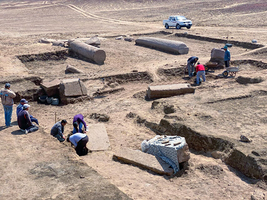 Tapınağın geçmişte bölgede yaşanan bir deprem nedeniyle yıkılmış olduğu bilgisine yer verilen açıklamada, tapınağın girişinde yaklaşık 8 metre uzunluğunda iki granit sütun ile birkaç taş blok bulunduğu aktarıldı.