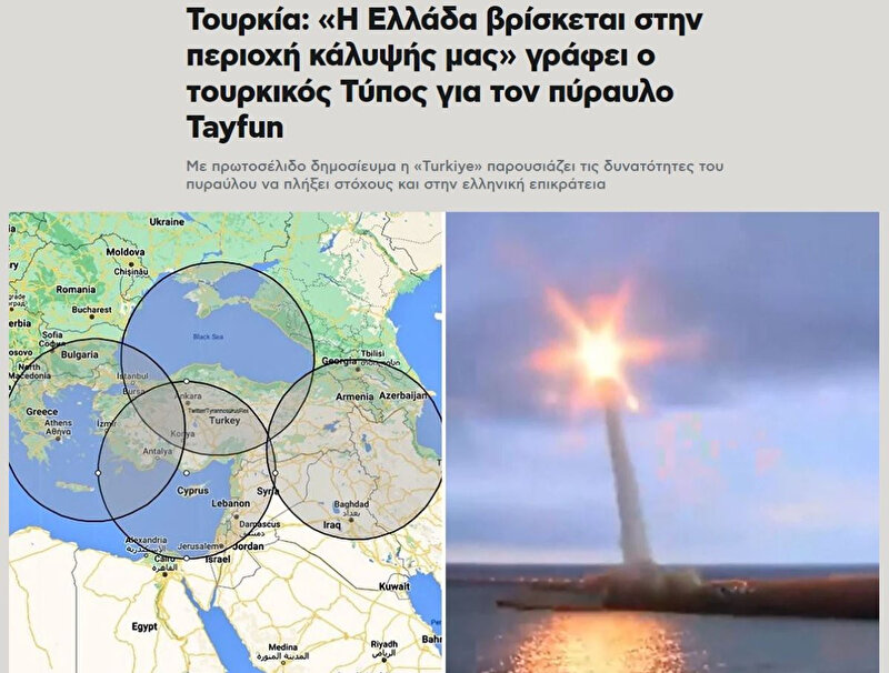 Rize'de, Roket Sanayi ve Ticaret A.Ş. (ROKETSAN) tarafından geliştirilen yerli füze 'Tayfun' test edilmesinin ardından gündeme geldi. Yapılan test atışında hedefi tam isabet vuran Tayfun, Yunanistan'da endişe yarattı. Ülke basınında manşetlere taşınan haberlerde, füzenin Türk Silahlı Kuvvetleri'nin (TSK) envanterine katılacağı ayrıntısına dikkat çekilirken, Türkiye'nin güç gösterisi yaptığı belirtildi.