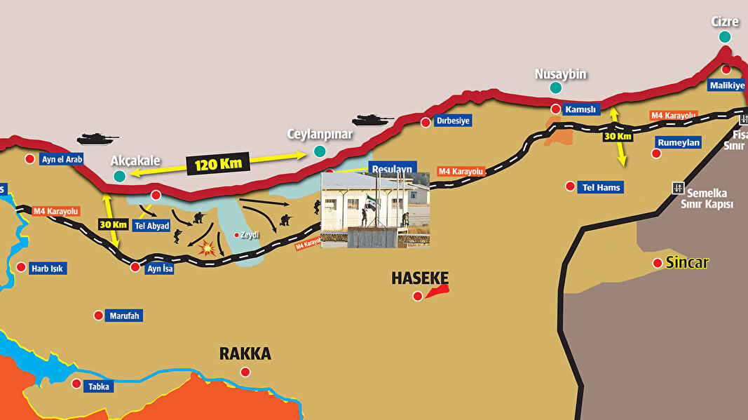 - Barış Pınarı Harekâtı’nın ilk 5 gününde Rasulayn, Suluk ve Tel Abyad ile çevre köyler kontrol altına alınarak M4 karayoluna ulaşılırken, yeni hedef Ayn İsa olarak belirlendi. Ayn İsa’nın da ele geçirilmesiyle birlikte terör örgütünün kendilerince ‘kalelerinden biri’ olan sözde ‘Kobani Kantonu’ tamamen izole edilmiş olacak. Örgütün Kobani olarak isim koyduğu Ayn el-Arab, Türk askerinin M4 yolu sonrası Rakka yolunu da kapatmasıyla birlikte ikmal ve tedariksiz kalacak. M4 karayoluna ulaşılmasıyla birlikte Ayn el-Arab’a Irak kuzeyinden yardım gelmesinin imkanı kalmamıştı. Mehmetçiğin geldiğini gören Ayn İsa’daki teröristlerin bölgeyi terkettikleri öne sürülüyor.