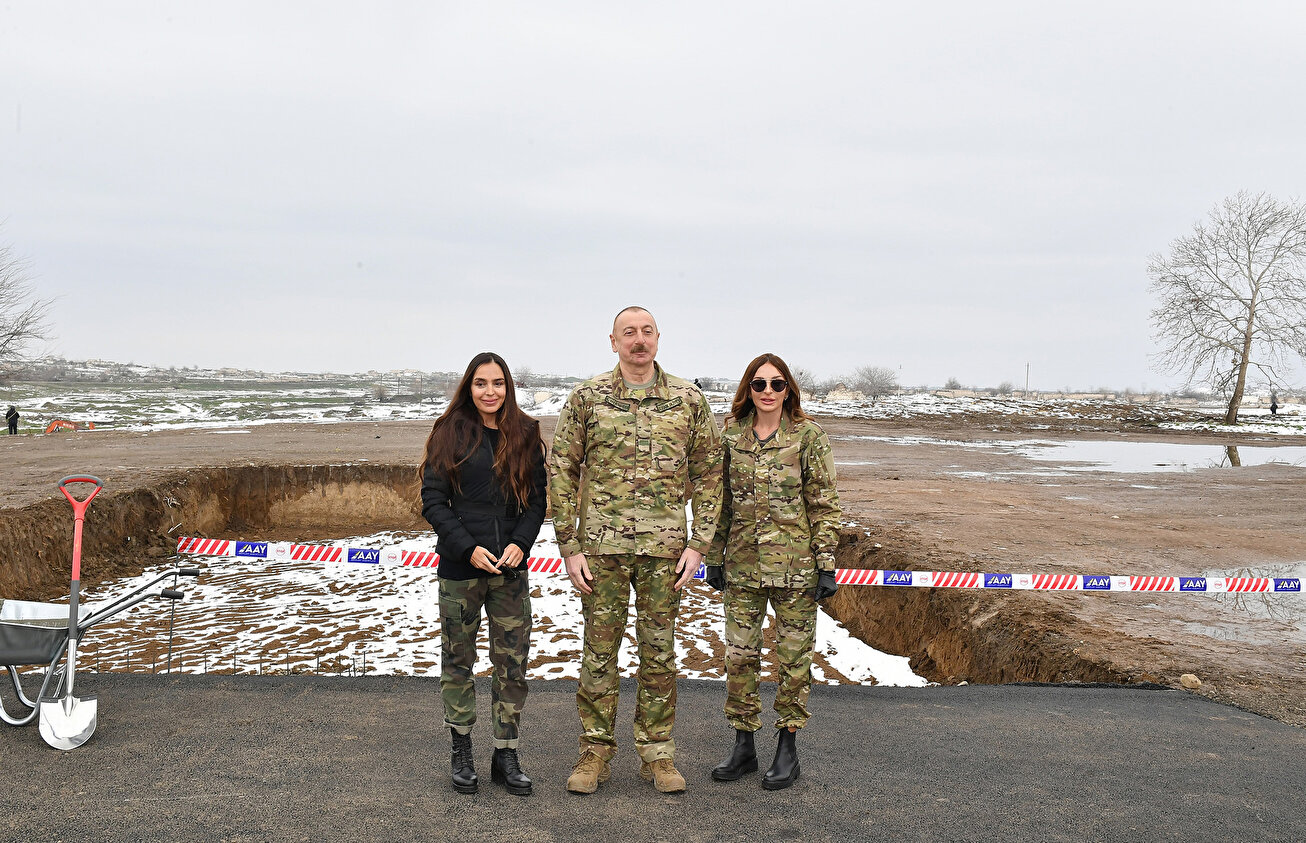 Azerbaycan Cumhurbaşkanı İlham Aliyev, eşi Mihriban Aliyeva ve kızı Leyla Aliyeva ile Fuzuli ve Hocavend illerini ziyaret eden Aliyev, önce Fuzuli-Hadrut kara yolunun temel atma törenine katıldı.