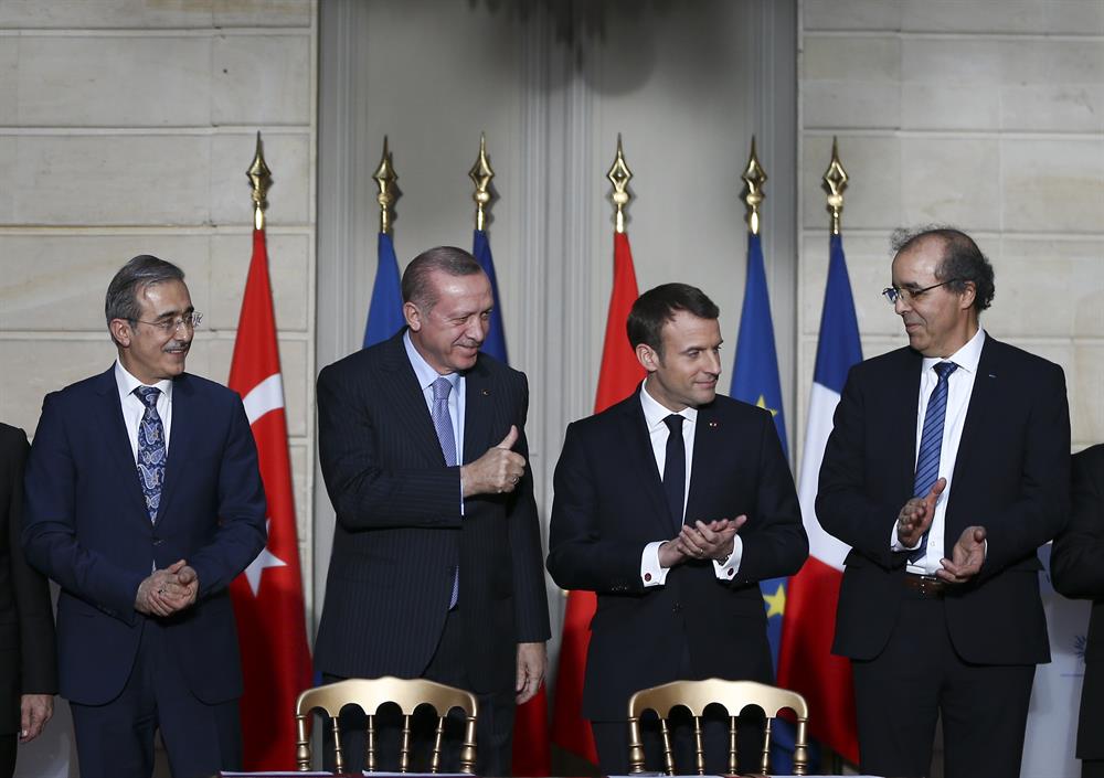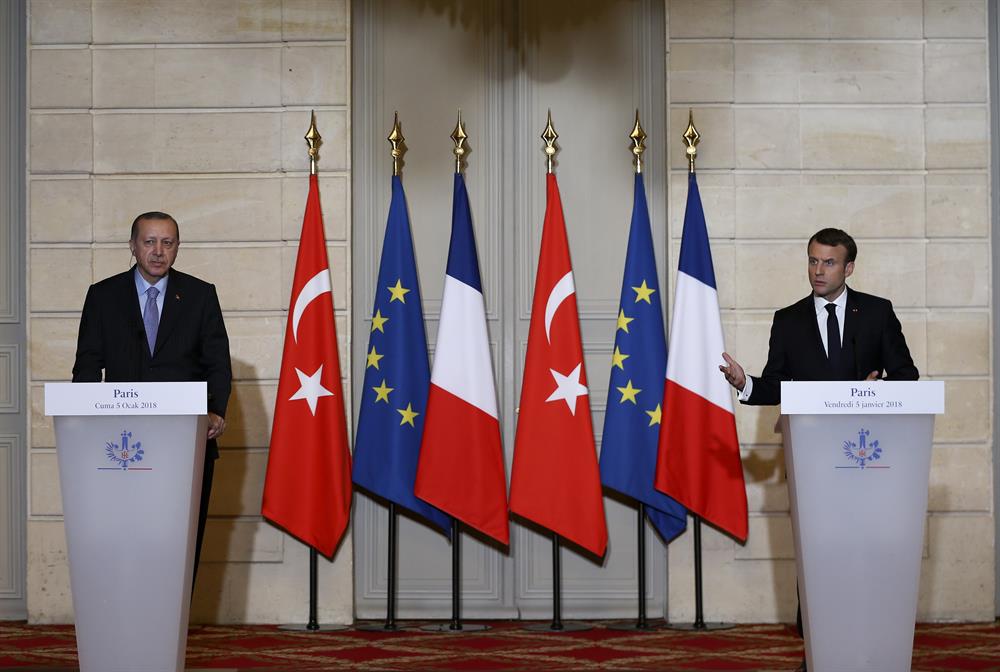 Türkiye ile Fransa arasında eski, güçlü ve yakın ilişkilerin olduğunu belirten Fransa Cumhurbaşkanı Emmanuel Macron, Erdoğan ile görüşmesinde ortak sorunları, ikili ve bölgesel konuları ele aldıkların ifade etti.