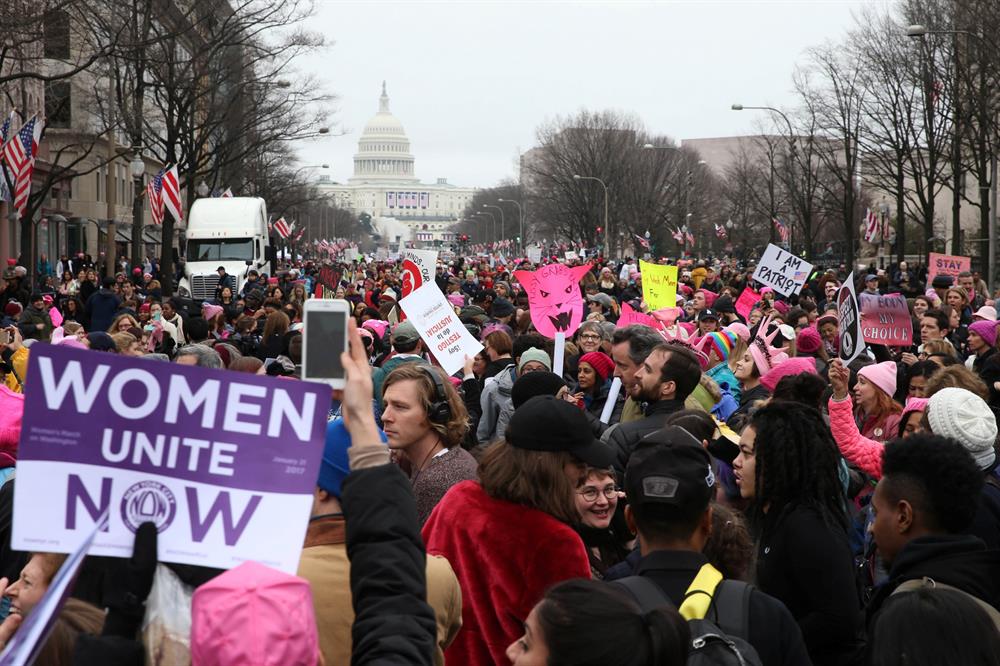 Birçok eyaletten başkent Washington'a gelen on binlerce protestocu, Kongre binasının etrafında toplandı. Programın organizatörlerinden Gloria Steinem, burada yaptığı konuşmada, Trump'ın başkanlık kampanyasında ülkedeki azınlıklar ve kadınların hedef alındığını belirtti.