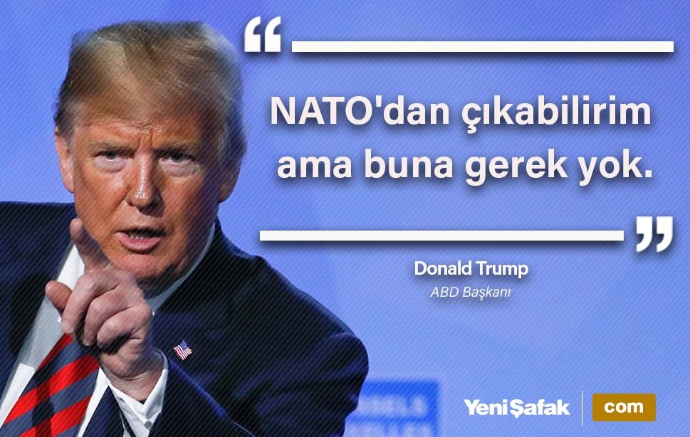 - Alman haber ajansı DPA, Trump'ın müttefik ülkelerin savunma harcamalarını arttırmaması durumunda ABD'yi NATO çekmekle tehdit ettiğini öne sürdü.