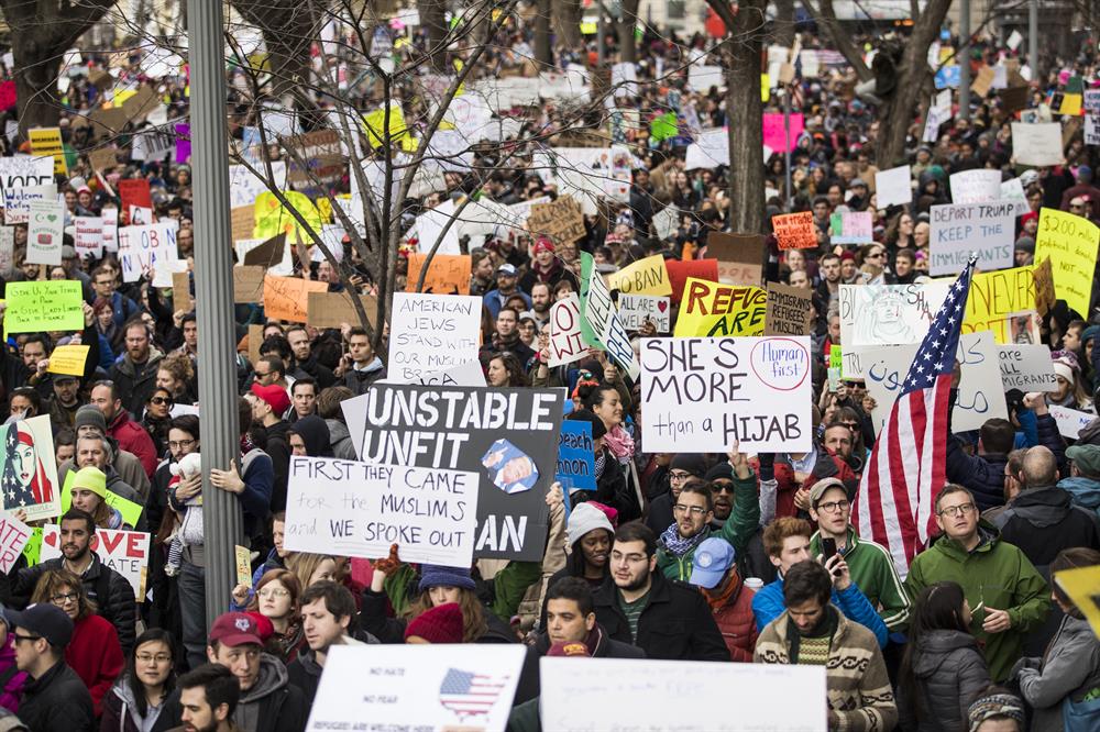 ABD'nin "özgürlükler ve göçmenler ülkesi" olduğuna vurgu yapan çok sayıda pankartın açıldığı eylemde, ülkenin farklı eyaletlerinden gelen binlerce kişi, hep bir ağızdan yeni Başkan Trump'ı protesto etti.