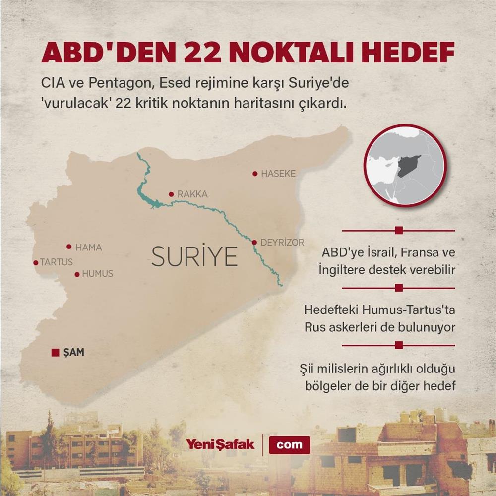 ABD ve Fransa'ya ait 2 geminin Suriye'ye yaklaşması, Şam rejiminde paniğe yol açtı. CIA ve Pentagon'un belirlediği 20'den fazla hedefin gemilerden atılacak seyir füzeleriyle imha edileceğini öngören Suriye ordusu, envanterdeki araçları korumak için bir dizi önleme başvurdu. Esed rejimi, Şam, Humus, Kuneytra, Halep ve Dera'da bulunan askeri üslerdeki güçlerinin bir kısmını farklı bölgelere kaydırdı. ABD füzelerinin muhtemel hedefleri arasındaki askeri havaalanlarında konuşlu savaş uçakları da aceleyle Rus üslerine taşındı. Uçakların götürüldüğü Rus üsleri de Şam ordusuyla aynı hareketliliği yaşadı. Lazkiye, Tartus, Hama ve Humus'ta inşa edilen Rus üslerinde kırmızı alarm verildi.