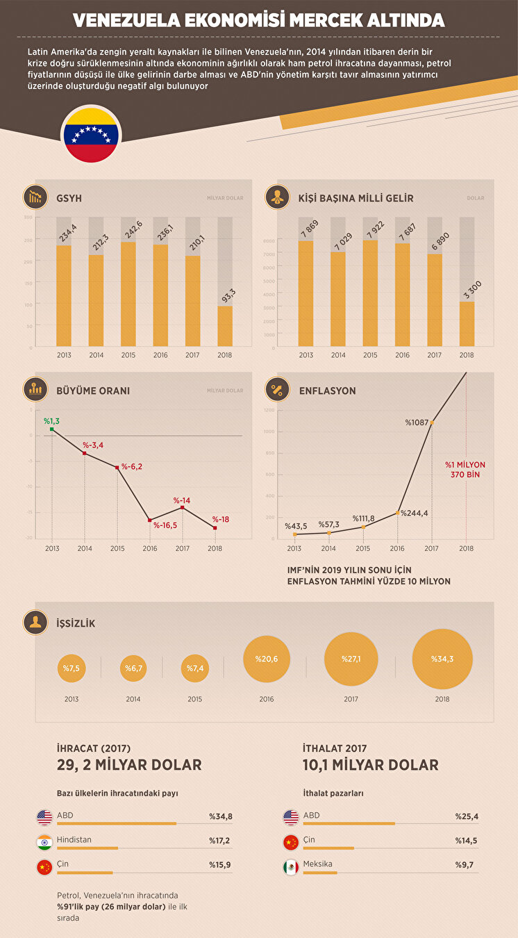 Venezuela Devlet Başkanı Nicolas Maduro'nun meşruiyetini kabul etmeyen ABD yönetimi, Venezuela devlet petrol şirketi PDVSA'ya (Petroleos de Venezuela) yaptırım kararı almış ve ülkenin ABD'deki 7 milyar dolarlık varlığını dondurmuştu.
