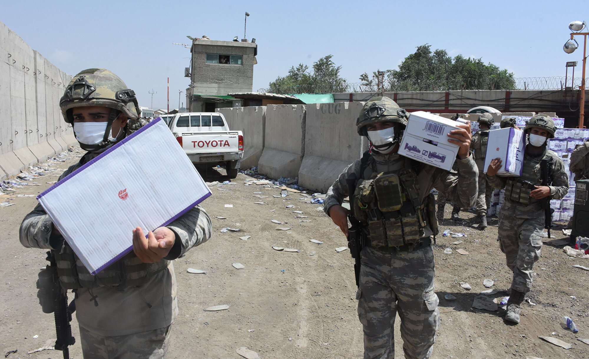 Afganistan Türk Görev Kuvveti Komutanlığı bünyesinde görev yapan Türk askerleri, Hamid Karzai Uluslararası Havalimanı'nda diğer ülke askerleri ile iş birliği içerisinde çalışmalarını sürdürüyor.