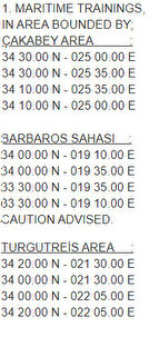Libya açıklarında eğitim yapmak için NAVTEX ilan eden Türk Deniz Kuvvetleri, eğitim alanlarının adını Barbaros, Turgut Reis ve Çaka Bey olarak belirledi.