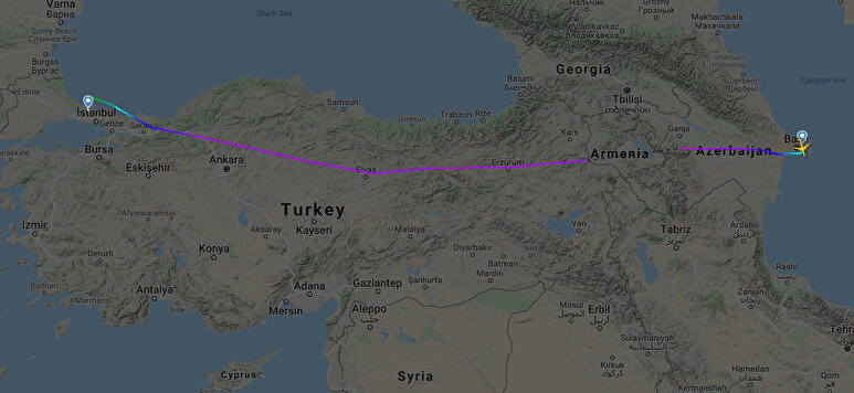 Bakü’den İstanbul’a Ermenistan üzerinden uçuş