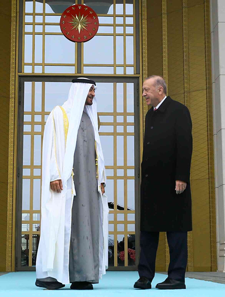 Cumhurbaşkanı Recep Tayyip Erdoğan ile Birleşik Arap Emirlikleri (BAE) Veliaht Prensi Şeyh Muhammed bin Zayid El Nahyan, Ankara'da bir araya geldi. Cumhurbaşkanlığı Külliyesi'nde baş başa ve heyetler arası görüşmenin ardından iki ülke arasında çeşitli alanlarda anlaşmalar imzalandı.